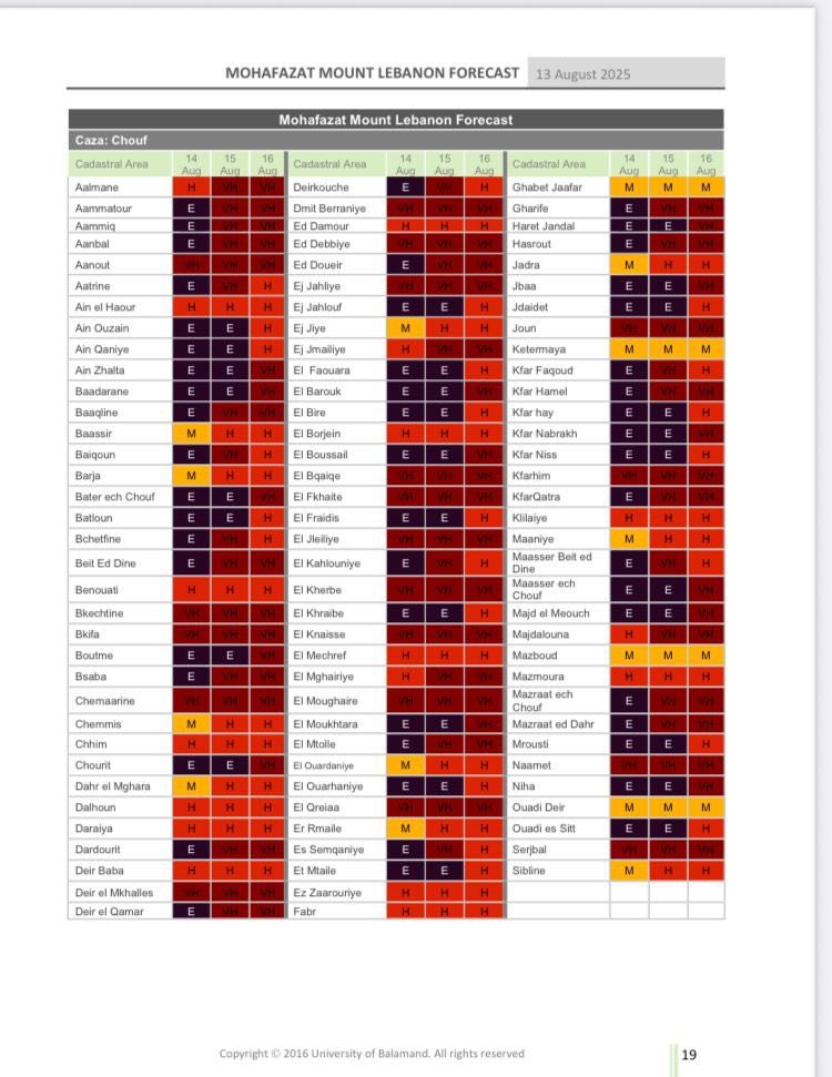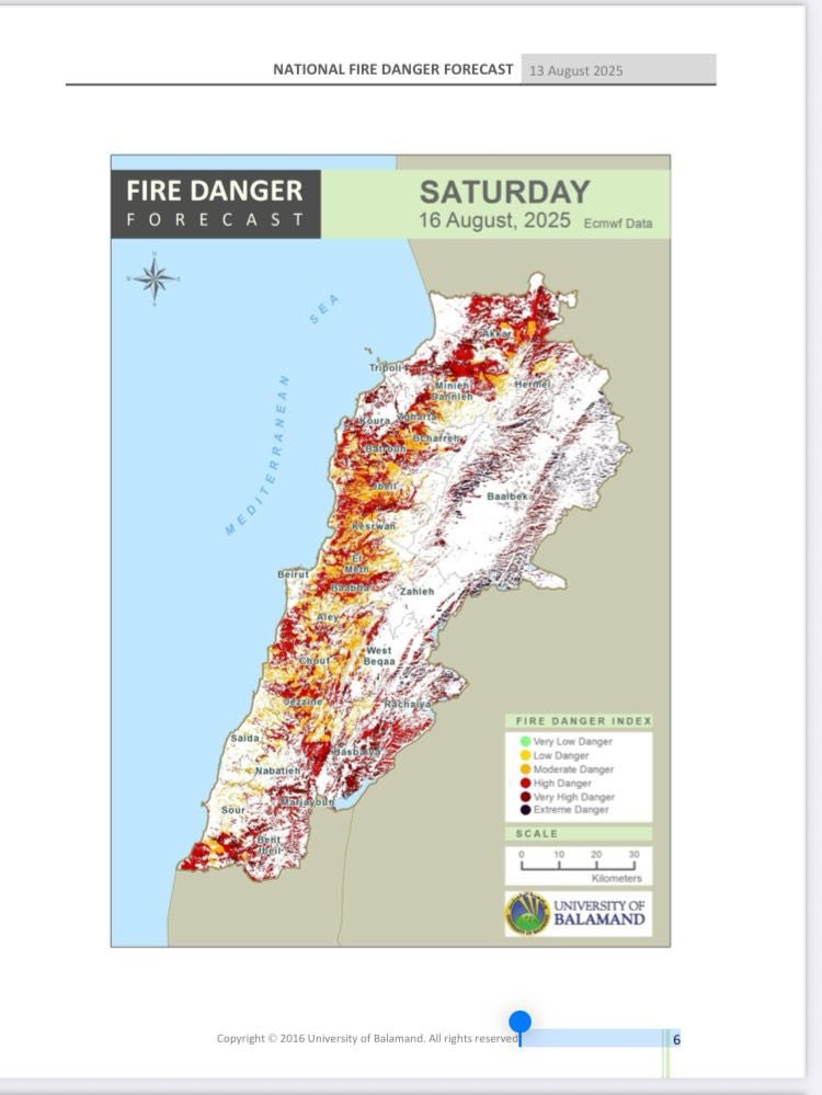 بسبب درجات الحرارة المرتفعة جدا نشارككم اليوم تقارير صادرة عن جامعة البلمند حول الأخطار المرتفعة (very high danger) للحرائق في هذه الفترة.