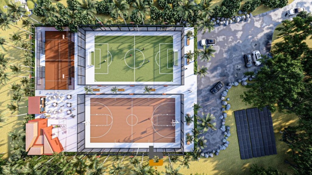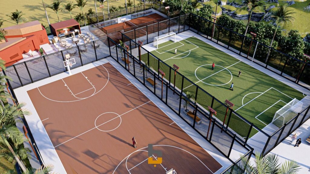 - المرحلة الثانية: إنشاء ملعب لكرة السلة والكرة الطائرة.